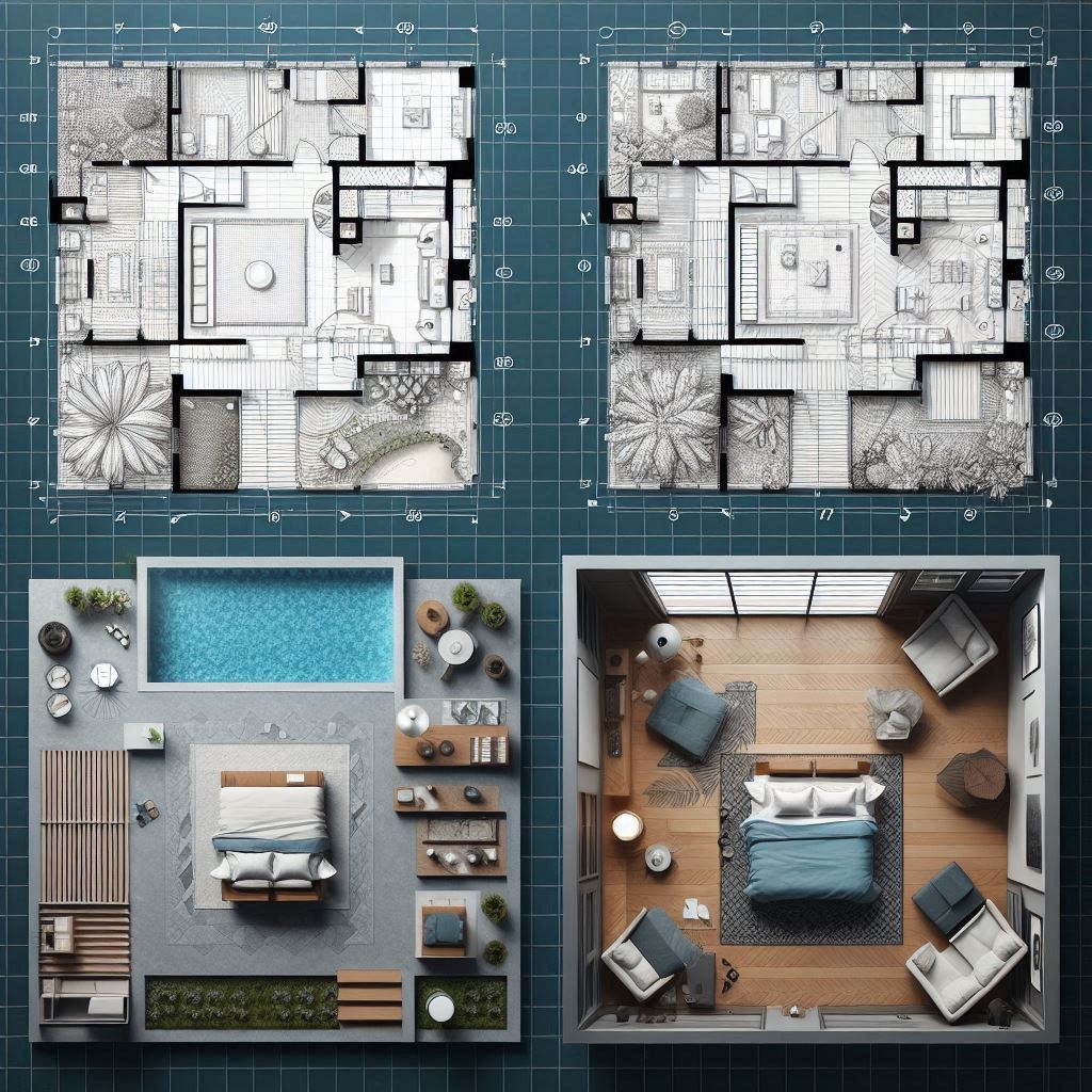 Примеры чертежей и визуализации различных помещений: